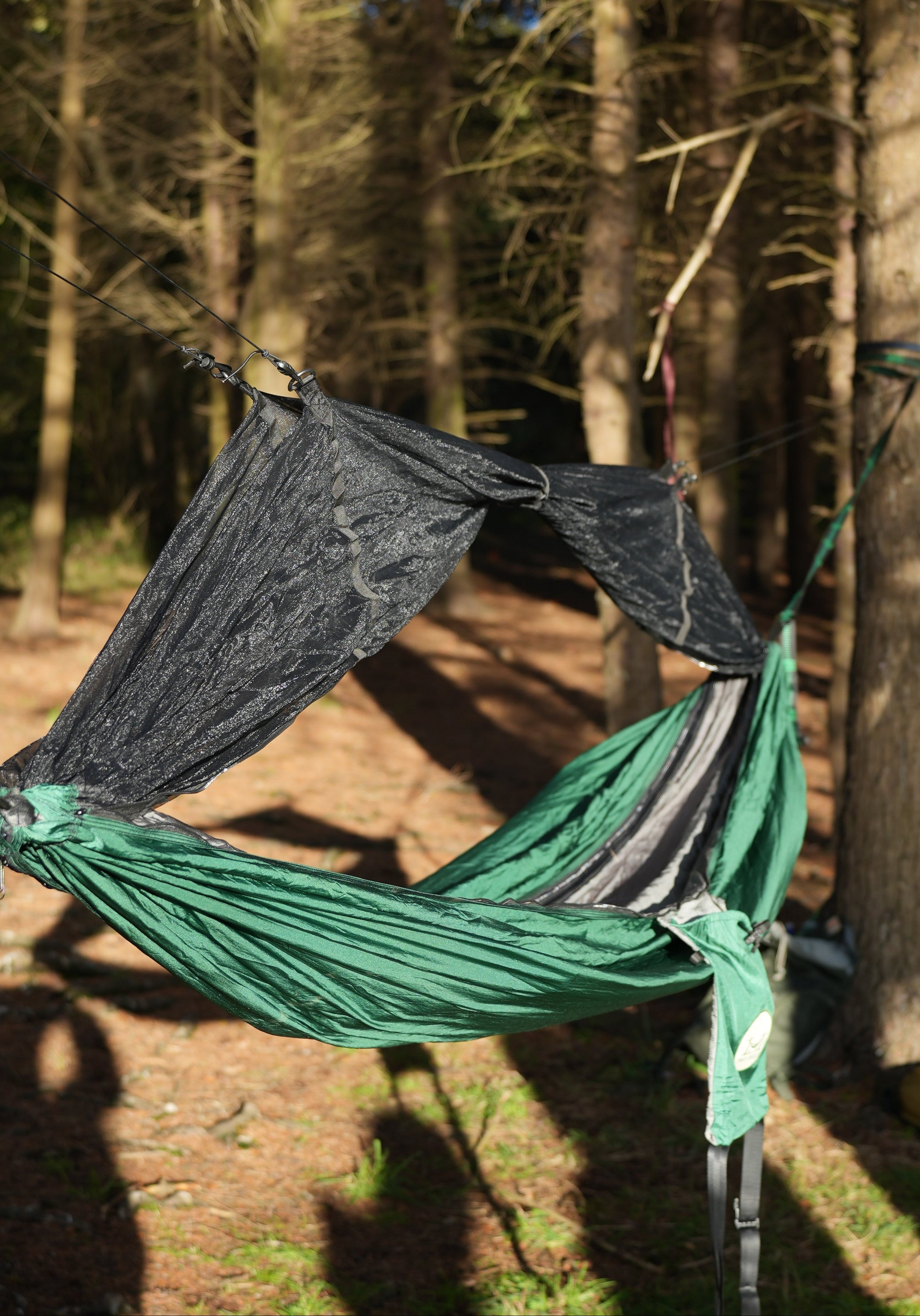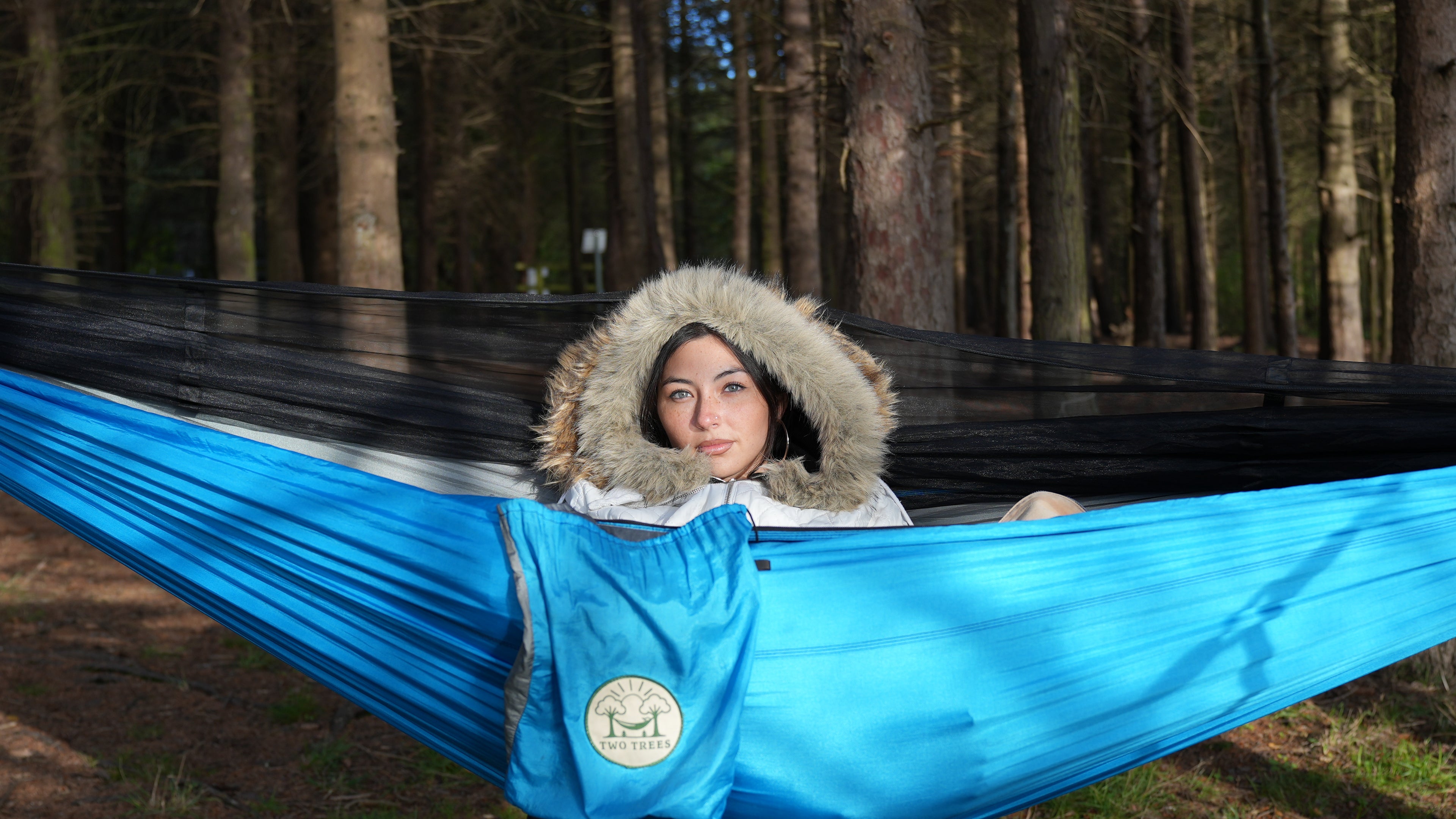 The Two Trees Hammock incorporates ultra fine mesh AND with a double layered bottom that acts as an air gap to prevent mosquitos biting through the hammock offering protection from all angles.